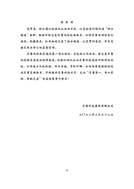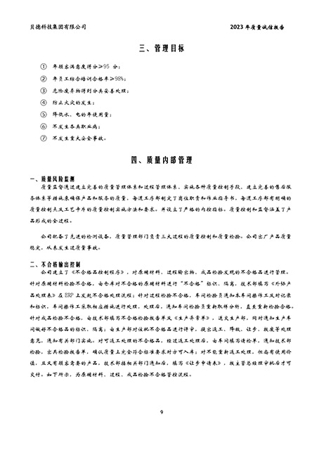 貝德科技集團(tuán)2023質(zhì)量誠信報(bào)告
