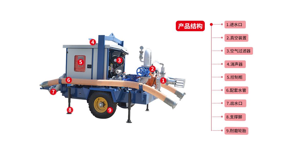 6)該泵還可以與移動搶險車進(jìn)行配套,以達(dá)到臨時排澇抗旱搶險的目的。
